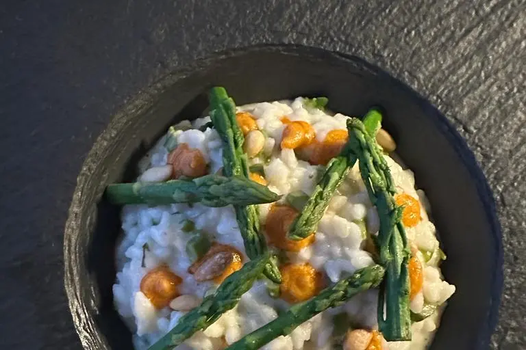 Sui primi, fantastici sia il risotto con asparagi, pesto di pomodori secchi e pinoli sia i nastri con spinaci, acciughe del Cantabrico e limone candito, ma anche ottimo lo spaghetto con il crudo di gamberi, alloro, pepe rosa e lime.
