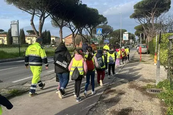 FIUMICINO - Un modo diverso di andare a scuola quello proposto stamattina ai bambini ed ai genitori che hanno partecipato all’iniziativa “Piedibus”, organizzata dalla Pro Loco Maccarese/Fregene e patrocinata dal Comune di Fiumicino. La prima di sei giornate durante le quali i piccoli alunni dell’I.C. Marchiafava, accompagnati da insegnanti, genitori e scortati dagli operatori di Protezione civile, hanno percorso tutti insieme circa un km per raggiungere la scuola. In cima al corteo il vicesindaco, Giovanna Onorati ed in rappresentanza del Consiglio comunale, il consigliere Massimiliano Catini.