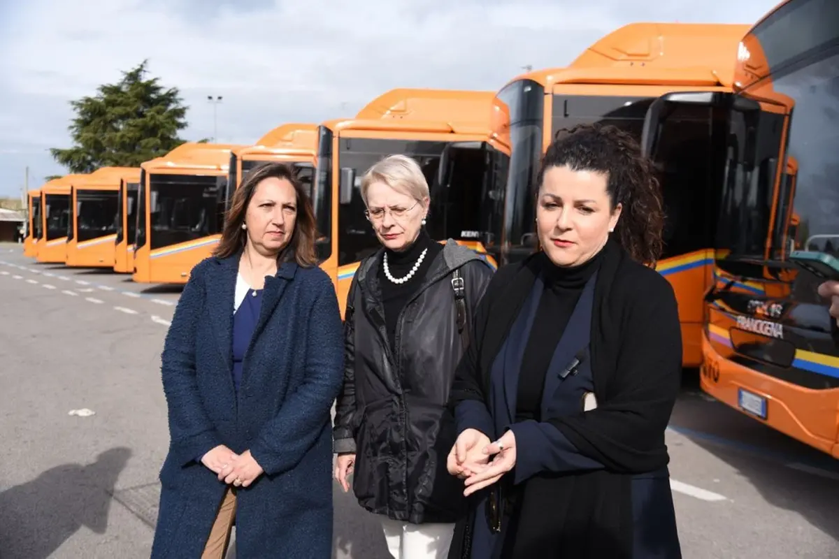 Nove nuovi autobus di linea urbani di ultima generazione con adeguamenti ad hoc per i diversamente abili e realizzati secondo gli standard europei della mobilità sostenibile. Sono i nuovi mezzi della società dei trasporti pubblici di Viterbo, Francigena, presentati ieri mattina in largo San Paolo alla presenza della sindaca di Viterbo Chiara Frontini, dell’assessore alle economie e risorse finanziarie e società partecipate Elena Angiani e dell’amministratrice unica di Francigena Srl Elisabetta Ferrari. «Il nuovo parco autobus - come ha spiegato l’assessore Angiani – sono di ultima generazione e hanno vari optional come punti usb per i telefonini, telecamere di bordo, sicurezza interna e una pedana per il sollevamento delle carrozzine. Anche la pavimentazione è ignifuga e a prova di sicurezza». Sulla stessa lunghezza d’onda le parole dell’amministratrice di Francigena Elisabetta Ferrari. «Sono tutti autobus che vanno a metano – ha detto Ferrari – e rispettano i principi della transizione ecologica. Abbiamo voluto offrire un servizio confortevole a bordo rispettando l’ambiente e basandoci sulle nuove tecnologie in materia». La sindaca di Viterbo Chiara Frontini ha ricordato l’impegno per «l’investimento sulla società partecipata Francigena per il suo risanamento. Quello di oggi (ieri, ndr) è un altro tassello per i servizi ai cittadini. Con questi 9 nuovi autobus arriviamo a quota 22 nuovi mezzi di Francigena che hanno le caratteristiche per il rispetto della mobilità sostenibile». La Società Francigena srl, che è stata oggetto di vari interventi e analisi in consiglio comunale, attualmente gestisce 13 linee urbane a Viterbo e nelle frazioni con una rete pari a oltre 189 chilometri e permette un totale di 936 mila chilometri di percorrenza degli autobus ogni anno: quasi 3 volte le distanza terra-luna.