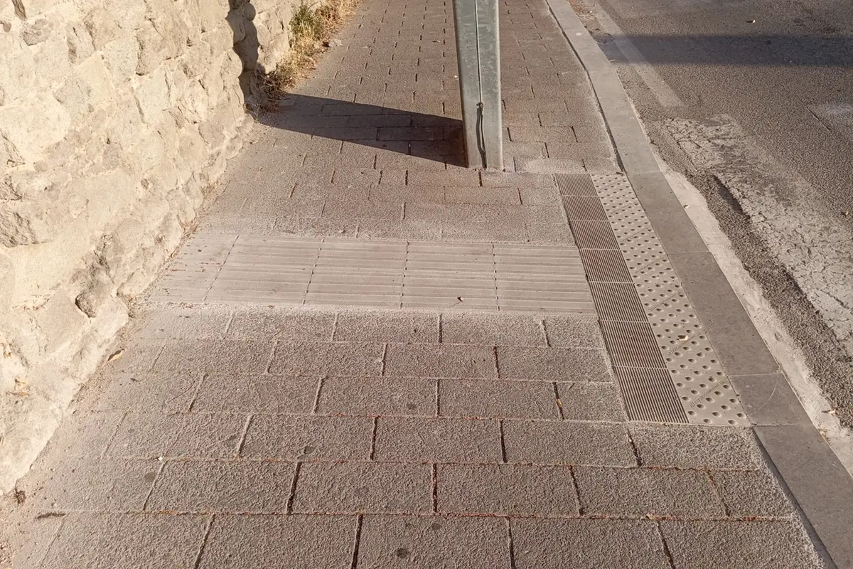 Nell’ottica di quella che è stata denominata la passeggiata ecologica lungo le mura, quindi un percorso fruibile da tutti per l’intero arco delle mura storiche, secondo alcuni lettori non si capisce come possano esserci delle interruzioni nei doverosi percorsi sensoriali posti in punti determinanti: a ridosso dell’attraversamento pedonale e nel tratto di marciapiede. Non dovrebbe esserci continuità del percorso sensoriale per permettere a ciechi e ipovedenti di svoltare, procedere lungo la linea intrapresa ed evitare, così, rischi per la propria incolumità? Questi due casi che i lettori hanno segnalato in quale categoria di interventi rientrano? Non sono palesemente precari o quantomeno incompleti? Risponde a stretto giro l’assessore alla qualità degli spazi urbani Emanuele Aronne, da sempre sensibile alla tematica delle barriere sensoriali, tanto che ha portato alla loro quasi abolizione al museo dei portici di Palazzo dei Priori ed è stato fautore e creatore delle due edizioni di “Io e te sulla stessa pedana” che, pochi giorni fa, ha fatto il punto a Viterbo su legislazione, storie di successo e prospettive per l’abbattimento urbano delle barriere architettoniche.