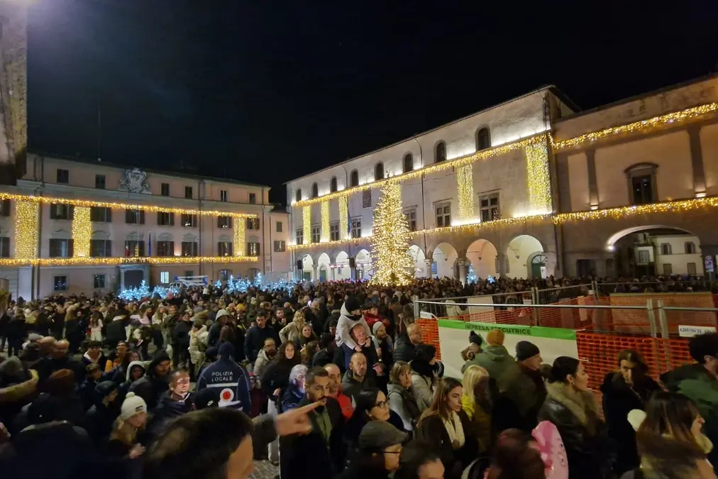 In piazza del Comune uno scorcio da cartolina natalizia che ricorda le atmosfere di un paese nordico. Il bianco innevato del bosco - è l’allestimento novità di questo Natale 2025, quattro isole con piante di varie altezze - che esalta le luci calde, dorate, che illuminano il grande albero da 12 metri. E non solo. I palazzi amministrativi della centralissima piazza sono adornati da un tripudio di installazioni luminose, a luce calda. Piazza del Comune e le vie limitrofe gremite di folla ad attendere l’accensione dell’albero. Moltissime le persone presenti che sono state accolte dalla sindaca Chiara Frontini con un «bentornati in piazza del Comune per l’accensione dell’albero che, dopo due anni, torna nel cuore della città». Un momento di «luci e condivisione» ha voluto ribadire. E, dopo aver augurato «Buon Natale Viterbo», all’insegna appunto dello spirito di condivisione ha invitato tutta la piazza a scandire insieme a lei il countdown per il “fiat lux”. Un coro che all’unisono con la prima cittadina ha gridato: «10, 9, 8…». Frontini ha anche tenuto a rendere noto che dal balcone del palazzo del Podestà stavano riprendendo in diretta tutta la cerimonia. Immagini che si potranno poi rivedere su Visititaly. Il saluto della sindaca è stato preceduto dal coro gospel che si è esibito anche dopo l’accensione. In piazza, insieme all’inquilina di Palazzo dei Priori, il prefetto Sergio Pomponio, l’intera giunta comunale, il presidente del consiglio Marco Ciorba e i consiglieri di maggioranza. Tra cui Maria Rita De Alexandris, che al momento dell’accensione si è commossa, e Alessandra Purchiaroni ringraziate dalla sindaca per la bellezza delle installazioni e degli allestimenti da loro curati.