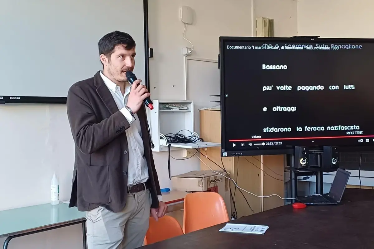 SUTRI - Questa mattina il sindaco Matteo Amori insieme al preesidente del consiglio Vincenzo Petroni e all’assessore alla pubblica istruzione Eleonora Fabrizi ha partecipato a un incontro con i ragazzi delle terze medie per raccontare la triste vicenda dell’eccidio dei 17 Avieri Sardi. «È stato un momento importante di profonda riflessione e commemorazione - ha commentato il sindaco - che è servito ai ragazzi per approfondire una parte significativa e dolorosa della nostra storia. Abbiamo raccontato loro - ha detto Amori - i fatti di quel triste 17 novembre del 1943 invitandoli a riflettere sui conflitti che ancora oggi purtroppo si verificano e insieme abbiamo guardato un documentario raccontato dall’unico superstite Fernando Zuddas. Ringrazio le professoresse Maddaloni e Tubito per aver collaborato a questa iniziativa, la dirigente scolastica per la disponibilità e l’ospitalità e ovviamente tutti ragazzi che hanno assistito con interesse e partecipazione».
