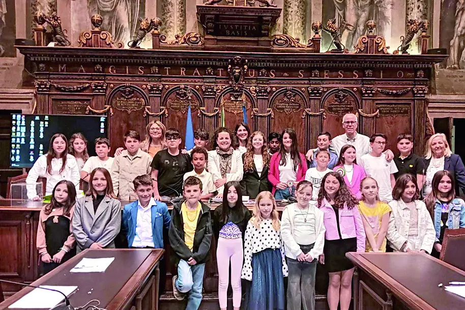 Consiglio comunale dei giovani: Gioia Maria Buzzi è la nuova sindaca. I vicesindaci sono Gabriele Onorati ed Elena Cionci. Gioia Maria Buzzi ha 11 anni, frequenta la 1° D indirizzo musicale dell’istituto Fantappié e gioca a pallavolo. Grande partecipazione, ieri pomeriggio, nella sala consiliare di Palazzo dei Priori per il rinnovo del consiglio comunale dei ragazzi, ragazze, bambini e bambine. Sedici candidati, un vero record, hanno snocciolato un programma per Viterbo e la scuola con punti interessanti. Tra questi l’abbattimento totale delle barriere architettoniche, maggiori spazi verdi e parcheggi, rilancio del centro storico, ampliamento del taglio dell’erba, spazi aggregativi per giovani e anziani, nuove strutture sportive, miglioramento dello stato delle strade cittadine. Solo per citarne alcune. Molti candidati hanno citato strutture per disabili come ascensori per permettere piena inclusività: le scuole, in questo senso, hanno creato un atteggiamento costruttivo dei ragazzi che si è visto tutto. A presiedere il consiglio elettivo la prima cittadina Chiara Frontini con l’assessore Rosanna Giliberto e la consigliera Melania Perazzini che ha coordinato i lavori. Da scrutatori hanno dato il loro contributo i consiglieri comunali Paolo Moricoli e Alessandra Croci. Presente tra il pubblico anche la consigliera comunale Alessandra Troncarelli. «Il consiglio dei bambini e delle bambine, dei ragazzi e ragazze è un modo per noi di ascoltare la voce delle giovani generazioni che abbiamo fortemente voluto con l’assessore Giliberto e le consigliere Perazzini e Pietrangeli che ora non è qui ma è come se ci fosse. Alessandra Croci è stata un’insegnante e abbiamo qui Chiara, la sindaca uscente della prima legislatura. Così è un modo per farvi partecipare concretamente e parlare delle cose della città ,di ciò che vi piace e no. Portate le vostre proposte e noi le discutiamo in consiglio comunale e molte cose le abbiamo votate e finanziate. Molti hanno fatto dei programmi con volantini e Qrcode. Crediamo che dalle vostre idee e parole vengano le migliori proposte per cambiare le cose». La consigliera Perazzini ha detto che «è emozionante per voi, il ghiaccio si rompe molto facilmente, sarà bello condividere e parlare come fate a scuola. C’è anche il saluto della consigliera Pietrangeli che ci teneva che ha mandato un messaggio». Rosanna GIliberto ha detto che «questa seconda esperienza sarà proficua per voi e noi, c’è l’ascolto attivo con le vostre scuole. Il percorso si concretizzerà con la votazione: l’ultima proposta dello scorso consiglio comunale, di permettere la comunicazione aumentativa in ogni scuola, si sta realizzando in tutti i plessi». Dopo l’ascolto del saluto della consigliera Francesco Pietrangeli, all’estero per motivi di specializzazione, si è passati alle operazioni di voto che hanno sancito, dopo lo scrutinio, la vittoria della nuova giovane sindaca Gioia Maria Buzzi.