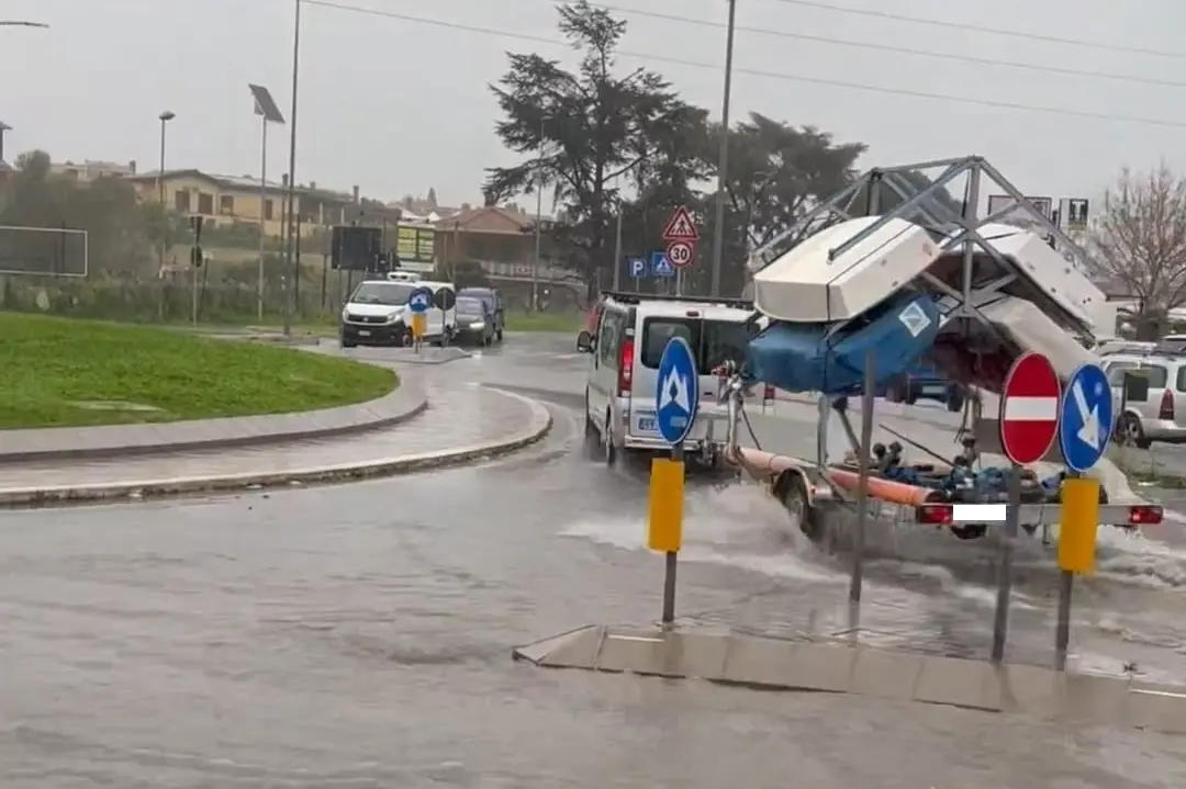 CERVETERI – Torna la pioggia battente e con essa le “onde” sulla rotatoria di via Settevene Palo. Un problema, quello relativo agli allagamenti che si pensava fossero finalmente risolti con i lavori effettuati proprio in prossimità dell’opera. Ma niente da fare. È bastata qualche ora di pioggia battente e la rotatoria è tornata ad allagarsi nuovamente causando problemi alla circolazione veicolare. In pochi minuti sui social sono così nuovamente apparse le immagini della situazione come quelle postate da alcuni residenti.