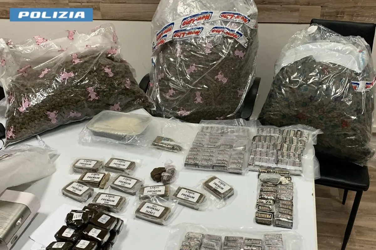 CERVETERI - Da Marina di Cerveteri ad Ardea per rifornirsi della "merce" necessaria da mettere sul mercato. È così finito nei guai un 23enne domiciliato nella frazione etrusca che ora dovrà rispondere di detenzione ai fini di spaccio. A notare i movimenti sospetti del giovane sono stati gli agenti del commissariato Viminale. I poliziotti, venuti a sapere della fiorente attività di spaccio svolta dal giovane hanno iniziato a tenerlo d'occhio, notando come il giovane in più occasioni si recasse a bordo della sua auto in una villetta ad Ardea. Ed è stato proprio al ritorno verso casa che il 23enne è stato fermato al casello di Orvieto dalla polizia stradale intervenuta in accordo con i poliziotti del commissariato di via Farini. Viste le visite ripetute nel tempo alla villetta di Ardea gli agenti hanno deciso di effettuare un sopralluogo. Il giovane aveva con sè il telecomando per accedere all'interno dell'abitazione e le chiavi per aprire grate di sicurezza e porta di ingresso. All'interno sono stati trovati due ecuadoregni, un uomo e una donna di 31 e 29 anni, che si sono identificati come i proprietari di casa. Sul posto, alla perquisizione, anche l'unità cinofila che ha puntato i riflettori su una stanza chiusa a chiave. Anche quest'ultima nelle mani del 23enne. Dentro la stanza 87 chili di hashish, 740 grammi di cocaina rosa, 8 grammi circa di cocaina bianca. Rinvenuto anche materiale per il confezionamento. La perquisizione è stata così estesa anche nella casa di Marina di Cerveteri dove sono stati ritrovati 6 chili di hashish, oltre 14 kg di marijuana e 124 grammi di wax.