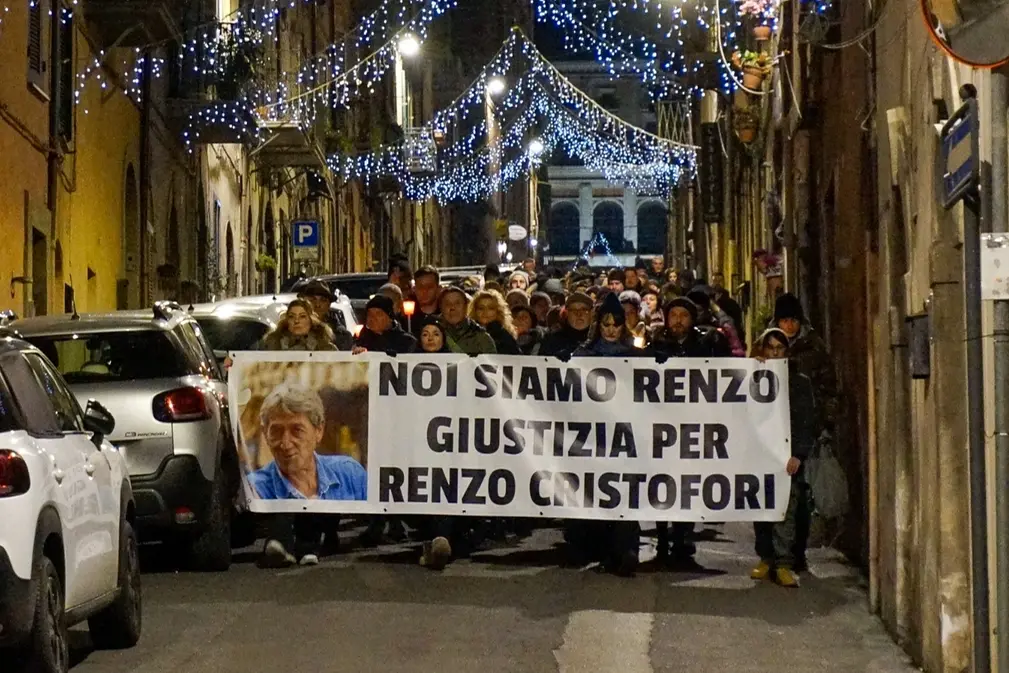Oltre trecento persone hanno partecipato venerdì sera a Caprarola alla fiaccolata per Renzo Cristofori, l’uomo di 68 anni, ucciso in strada il mese scorso per un no all’ennesima richiesta di soldi e di una sigaretta da parte di Ian Patrick Sardo. Il 31enne è in carcere accusato del delitto.