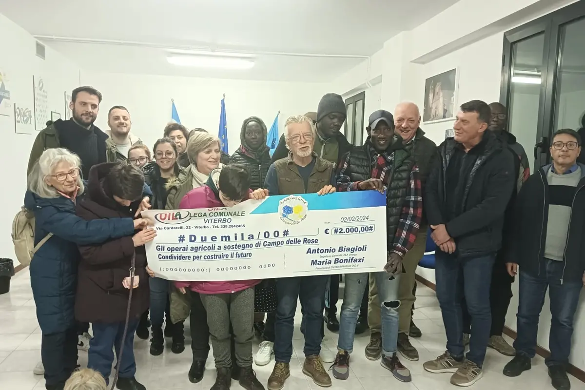 Associazione Campo delle rose: duemila euro donati dalla Uila Uil con i contributi dei lavoratori coinvolti nella recente maxi inchiesta sullo sfruttamento del lavoro agricolo e dal susseguente risarcimento. E’ stato Antonio Biagioli, segretario generale della Uila di Viterbo, a consegnare l’assegno alla presidente di Campo delle Rose Maria Bonifazi alla presenza del segretario generale della Uil di Viterbo Giancarlo Turchetti. Soldi che andranno ad aiutare i lavori per il completamento della struttura destinata a ragazzi e ragazze con disabilità psichica. «Abbiamo fatto un’importante vertenza di lavoro collettiva – dice Antonio Biagioli, responsabile Uila Uil Viterbo – e i lavoratori agricoli che ci hanno dato mandato di seguire questa vertenza hanno dato poi un contributo al sindacato. La Uil ha la presunzione di essere il sindacato delle persone e riteniamo che debba essere parte attiva della società e che in un momento come questo in cui di cose brutte se ne sentono tante quello che conta è fare solidarietà. Ci è sembrato quindi doveroso, visto che chi è aiutato dall’associazione Campo delle Rose sono persone con problemi seri e per questo abbiamo dato il nostro contributo». La Uila Uil ha quindi coinvolto i propri assistiti sulla vertenza di lavoro per sfruttamento nelle campagne viterbesi e «abbiamo stabilito una donazione di duemila euro per Campo delle Rose nella speranza che questo piccolo aiuto sia utile e nella speranza che il nostro gesto venga ripresa anche da altri. La Uil sta facendo molte iniziative di questa natura: dalla raccolta di sangue per l’Avis alla donazione di fondi alla comunità islamica per la moschea. Vogliamo che la solidarietà diventi un aspetto della vita quotidiana di ciascuno».