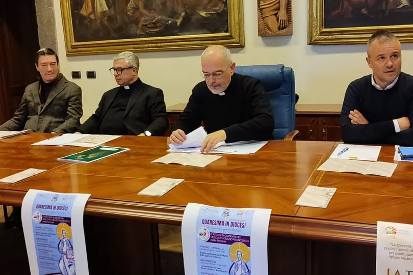 «La chiesa di San Faustino diventa la tenda del Giubileo. Insieme per un’esperienza di umanità» lo ha annunciato ieri don Massimiliano Balsi, vicario diocesano cultura e tradizioni, presentando gli appuntamenti della Quaresima 2025 nella Diocesi di Viterbo, che si ispirerà al principio “La speranza genera la vita” e che avrà le catechesi giubilari a cura del vescovo Orazio Francesco Piazza presso ogni forania. In quella di Vetralla e Viterbo, presso la basilica di Santa Maria della Quercia, si partirà l’11 marzo alle 18.30; seguirà quella di Bagnoregio martedì 18 marzo sempre alle 18.30 presso la concattedrale dei Santi Nicola, Donato e Bonaventura; il 25 marzo alle 18.30 sarà la volta di Montefiascone-Tuscania presso la concattedrale di Santa Margherita. L’ultima sarà l’8 aprile alle 18.30 presso la chiesa di Sant’Agostino ad Acquapendente. Sarà possibile seguire in diretta streaming le catechesi che sui canali social della Diocesi. Grande novità, come detto, sarà la tenda del Giubileo presso la chiesa di San Faustino a Viterbo. Dal 10 marzo all’11 aprile ci saranno 30 eventi e lectio magistralis tenuti dai movimenti ecclesiali laicali. Saranno 24 i movimenti e associazioni che si alterneranno presso la chiesa di San Faustino. L’esordio sarà a cura del vescovo Piazza che, alle 18, terrà la sua lectio magistralis, mentre si chiuderà il 10 aprile con il Giubileo delle bande della Diocesi di Viterbo e con il pellegrinaggio dalla chiesa di San Faustino a quella di Santa Maria Liberatrice. A illustrare questa serie di iniziative sono stati oltre a don Massimiliano Balsi, don Alfredo Cento, delegato vescovile per il laicato e le confraternite e Roberto Marchetti, presidente Consulta dei laici. «Le iniziative della Tenda del Giubileo - ha detto Roberto Marchetti – nasce dalla collaborazione tra il laicato e la chiesa per fare ciò che è necessario per il popolo di Dio e daremo tutti il massimo». Don Massimiliano Balsi ha parlato di «momenti di crescita spirituali e culturali, la Bibbia parla della tenda richiamando l’esperienza di Mosé e il suo confronto con Dio che punta alla riconciliazione di tutte le comunità umane».