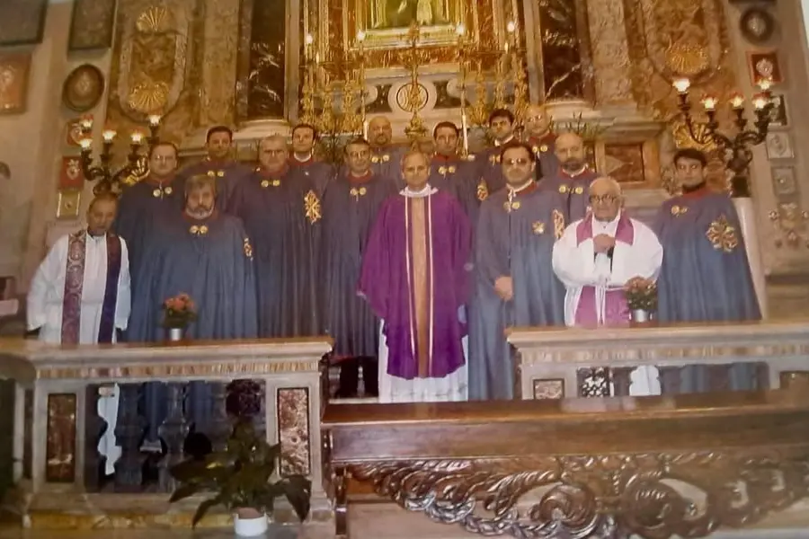 In occasione della visita il parroco Renato Maria Saveri e il cappellano gli presentarono i Cavalieri costantiniani di cui i padri agostiniani sono guida spirituale. E con loro il futuro papa Leone XIV ha posato nella foto ricordo.