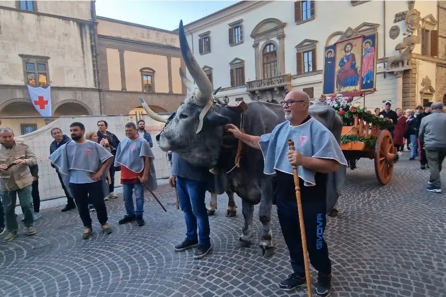La processione celebra il ritrovamento dell’icona del Santissimo Salvatore da parte di due contadini nelle campagne di Castel d'Asso nel XIII secolo. Il corteo si è mosso da piazza Santa Maria Nuova per attraversare le vie del centro. La chiesa omonima ieri ha ospitato le celebrazioni religiose che sono iniziate la mattina con la santa messa solenne, officiata da don Mario Brizi, e animata dal coro parrocchiale.