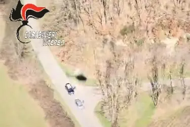 Il coordinamento del velivolo con le pattuglie dell'Arma delle stazioni di Onano e Grotte di Castro, con una collaudata operazione a tenaglia (il convergere di più pattuglie da più direzioni) ha consentito di bloccare l'auto con a bordo i sospettati.