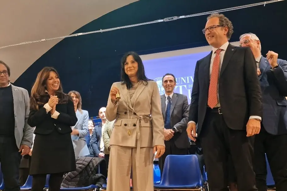 Tiziana Laureti inizia il proprio mandato alla guida dell’università della Tuscia forte di due atout: è la prima donna rettrice in quasi mezzo secolo di storia dell’ateneo e la prima viterbese a ricoprire il prestigioso incarico. Ieri la cerimonia d’insediamento e il passaggio di testimone - suggellato con la campanella e il medaglione rettorale - con il suo predecessore Stefano Ubertini, anche se ufficialmente è entrata in carica da sabato 1° novembre.