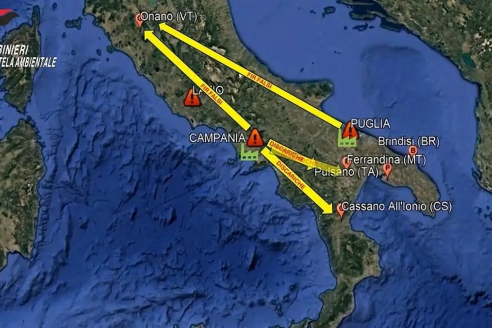 Gli stessi, mediante la predisposizione di falsa autorizzazione ambientale che attestava, in capo a una impresa di Onano, la Eko, la disponibilità di un impianto autorizzato al trattamento dei rifiuti nonché tramite l'utilizzo di formulari recanti indicazioni mendaci in ordine al luogo di conferimento per il successivo recupero, avrebbero effettuato molteplici operazioni illecite di movimentazione di ingenti quantità di rifiuti industriali, provenienti da Puglia e Campania. Rifiuti che in realtà venivano smaltiti illecitamente nella stessa Puglia, Calabria, Campania e Basilicata, o attraveso lo sversamento sul suolo o abbandonati all’interno di capannoni in disuso.