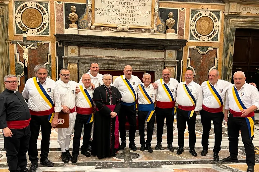 I facchini di Santa Rosa questa mattina sono stati ricevuti da Papa Francesco nella sala Clementina del palazzo apostolico, in Vaticano.