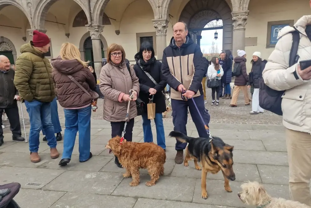 In tanti hanno risposto all'invito portando in piazza i propri animali: tanti i cani, ma anche qualche coniglio e animale da cortile.