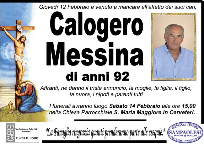 Home page>Necrologi>CALOGERO MESSINA di anni...
