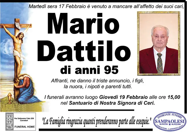 Home page>Necrologi>MARIO DATTILO di anni 95