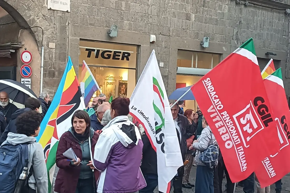 A parlare è Cipriana Contu, presidente provinciale Arci, che è stata la prima a intervenire al sit-in ‘Luci su Viterbo’ di piazza delle Erbe, ieri pomeriggio, organizzato da 19 sigle sindacali, partitiche e associazionistiche, per dire no alla presenza di Roberto Vannacci per le idee di cui è fautore. In piazza ci sono state varie decine di persone tra cui i politici Alessandro Mazzoli del Pd e Massimo Erbetti del Movimento Cinque Stelle.